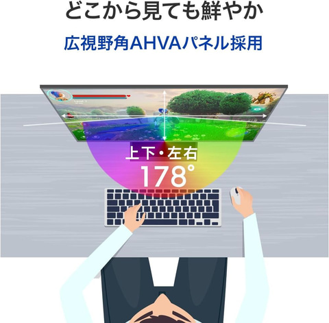 上下左右178°の広視野角なAHVAパネルを採用。見る位置や角度による色やコントラストの変化が少なく、どこから見ても映像をくっきりと鮮やかに映し出す。
