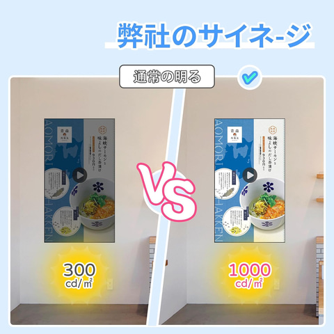 本商品は、4K対応で短い動画/写真/テキストなどを再生できる業務用広告に適した薄型壁掛け式のベゼルレスディスプレイ。1,000nits&高輝度で、画面の明るさが非常に高く目立つため、店舗やショッピングモールなどの明るい場所でも優れた視認性を誇る。