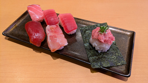 缶バッジが付属するメニューは、天然インド鮪の大とろ、中とろ(2貫)、中とろの焦がし醤油、漬け赤身、ねぎとろ包みがセットになった「さくらみこコラボ限定缶バッジ付き 天然インドマグロ6貫盛り」。缶バッジは描き下ろしイラストの顔部分を用いたデザインとなっており、全3種がランダムで提供される。なお、コラボ缶バッジの手配総数は14.6万個となり、完売次第終了となる。