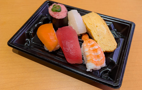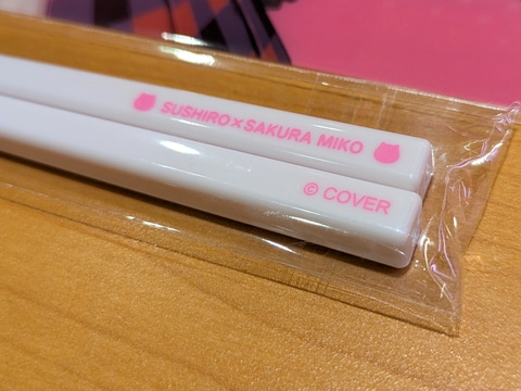 ネット注文限定で、コラボ限定のランチョンマットと箸が付属する「さくらみこコラボ限定セット6貫 コラボ限定ランチョンマット&箸付き」が提供される。すしのパッケージはまぐろ、サーモン、えび、いか、たまご、ねぎまぐろ軍艦。