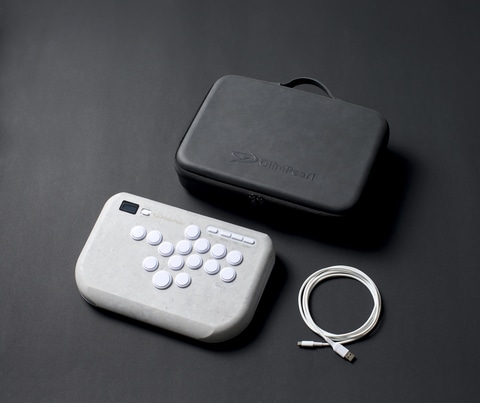 GlimPearlは、“細部が勝敗を分ける” というコンセプトのもと開発された、素材・構造・機能すべてにこだわったハイエンド・レバーレスアーケードコントローラー。陶器のような質感を持つ独自素材「NAGORI」天板、低ストローク高速反応ボタン「OneFRAME」、Brook Gen-5 MINI Fighting Board搭載といった特徴があり、競技シーンでも通用する性能を備えている。