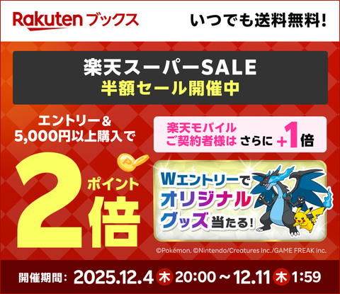 楽天ブックスは、「楽天スーパーSALEにメガシンカしたポケモンが大集合!」キャンペーンを11月28日10時より開催している。