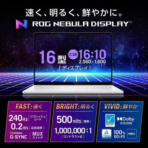 ディスプレイ:16.0型 OLED(有機EL)、グレア、2,560×1,600ドット(240Hz)