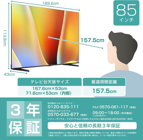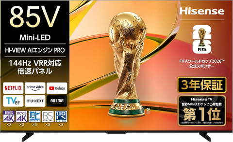 【Amazon.co.jp限定】ハイセンス 85V型「85E70R」4K Mini LED 量子ドット 2.1ch 倍速パネル