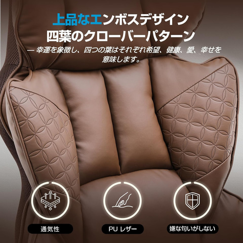 アップグレードされた型押しデザインのゲーミングチェア。精緻な型押しが施されたクッション部分が、座るたびに心地よいサポートを提供し、長時間使用しても快適さを維持する。