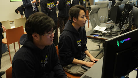 運営部門は、大会運営やクラブ運営などに興味のある人が参加できる、コミュニティの核となる部門。記者発表会には、金沢工業大学(KIT)たちが参加していた。彼らは大学でeスポーツの活動をしており、今回いち早く運営部門に名乗りを上げたのだそうだ。全員がクラブのロゴが入ったパーカーを来て発表会を手伝っていた。