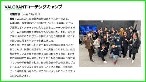 この中の「eスポーツコーチングキャンプ」は、北陸3県の16歳から22歳を対象に、「VALORANT」を使ってオンラインとオフラインでプロからコーチを受けることができるイベント。15名が参加して、Discordサーバーを使った約1カ月のオンラインレッスンの後、LAKUNAはくいに集まってオフラインでのコーチングが行なわれた。