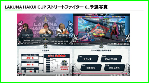 「LAKUNA HAKUI CUP ストリートファイター 6(以下、スト6)」は賞金の出る本格的なeスポーツの大会として開催され、決勝には北海道から九州まで日本全国の選手が羽咋に集まった。優勝者は北海道から参加者だった。大会の様子はYouTubeで見ることができる。
