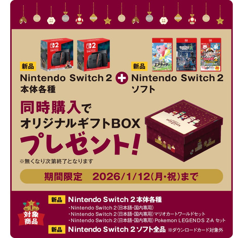 さらに、Switch2とソフト同時購入でオリジナルギフトBOXがプレゼントされるといった多数のキャンペーンも同期間で実施される。