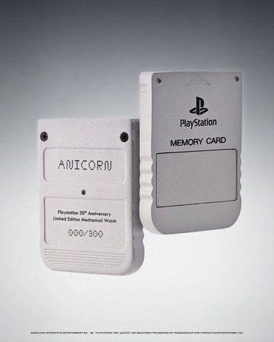 「The First PlayStation Limited Edition Mechanical Watch」は、文字盤とストラップに△〇×□を、長針、短針にはコントローラのSTARTとSELECTのボタンの形があしらわれている。また、メモリーカードをかたどったカードを使うとNFC通信で記念のネームボードにアクセスできる。