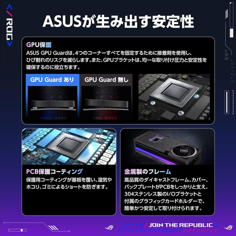 MaxContactデザイン:MaxContactはASUS独自の製造技術で、GPUヒートスプレッダの表面積を5%増加させ、熱効率を向上させる。