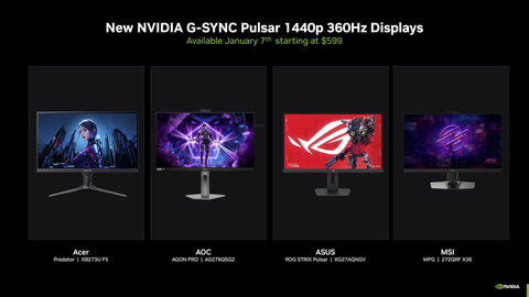 「G-SYNC Pulsar」に対応するゲーミングモニター(WQHD/360Hz)は、Acer、AOC、ASUS、MSIより順次発売予定となっている。