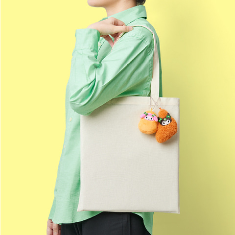 マイメロディのマスコットは毛足が短くつるりとした衣を再現しており、クロミのマスコットはパリパリの衣を再現するため毛足がながくモコモコとした質感だ。どちらも後ろには尻尾がデザインされており、ボールチェーンが付いているためカバンなどに付けて楽しめるだろう。