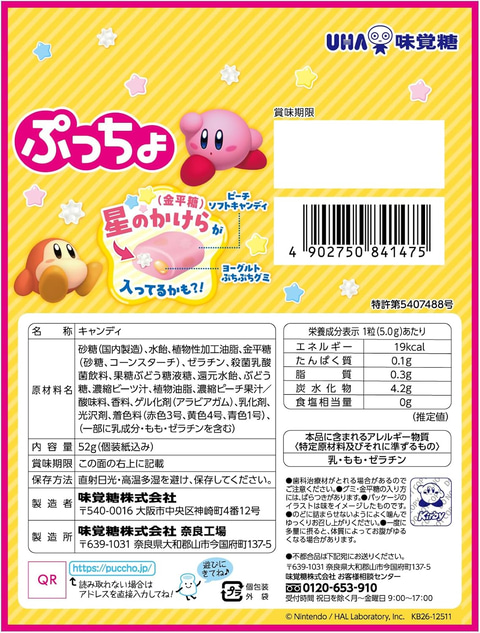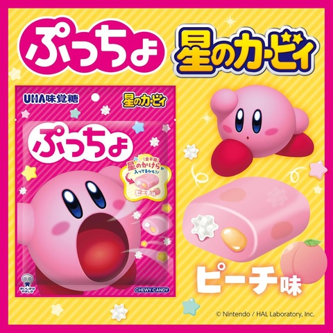 アクションゲーム「星のカービィ」をモチーフにしたぷっちょが新発売。ぷっちょはピーチ味で、ソフトキャンディの中にぷちぷちグミと「星のかけら(金平糖)」が入っている。