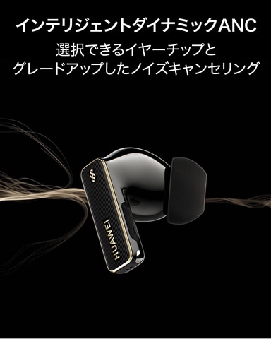 インテリジェントダイナミックANC技術により、フライト中や新幹線の中でもノイズを抑え静かな環境で音楽を楽しめる。3層構造形状記憶フォームでできたイヤーチップを同梱。耳の穴に合わせて自動的に広がり、ぴったりとフィットする。イヤーチップは2種類あり、HUAWEI AI Lifeアプリにより選択したイヤーチップに合ったノイズキャンセリングのリスニングパラメーターを最適化できる。