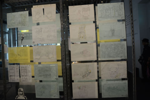 さらに作中に登場する思考戦車「タチコマ」、「フチコマ」の巨大立像、原画を細かく見ることができるインターフェース。さらにコピーされた原画を、実際のトレス台に乗せて見ることもできる。