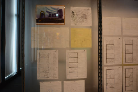 そして次の展示こそが本展のメインとなる空間だ。ここでは1,600展を超える制作資料を見ることができる。広大な空間に展示された原画はまさに圧巻の一言。これまでの「攻殻機動隊」の映像作品すべての作品の原画を見ることができる。