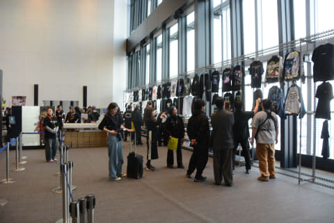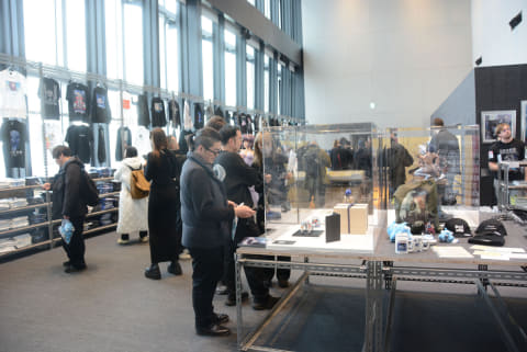 また、物販コーナーも注目。アニメ原画を描いたオリジナルグッズ、貴重なイラストや構図を活用したアパレル、ホビー商品、ポスター、原画のコピーなど150種類を超える商品が販売される。内覧会でも一部が販売していた。1/1スケールの草薙素子フィギュア、屏風など驚きのアイテムも販売している。作品のファンならずとも興味が惹かれる商品がそろっていた。