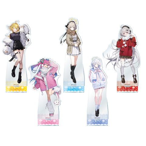 グッズは「A4サイズクリアファイル3枚セット(価格:1,100円)」と「アクリルスタンド(価格:各1,650円)」の2種。絵柄は小鳥谷なのさん、本阿弥あずささん、領国つかささん、星屑ぷらねさん、あいうららさんが冬服を纏った描き下ろしのイラストが使用されている。