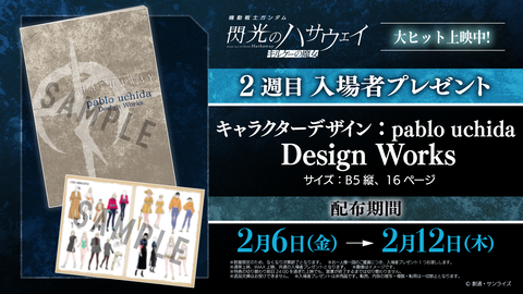 また、公開2週目となる2月6日からは、入場者プレゼントとして設定原案資料集「pablo uchida Design Works」の配布が予定されている。