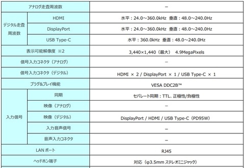 USB Type-C 入力(PD95W)に対応し、映像入力と同時にノートPCに給電することができる。ケーブル1本でワークからゲームまで快適な環境を構築でき、デスク周りもすっきりとまとめられる。