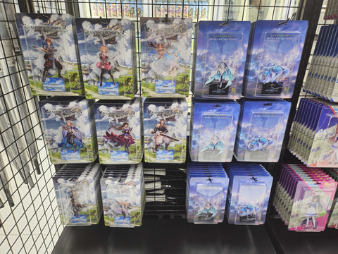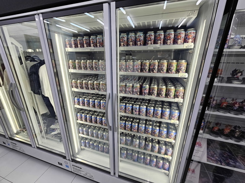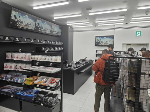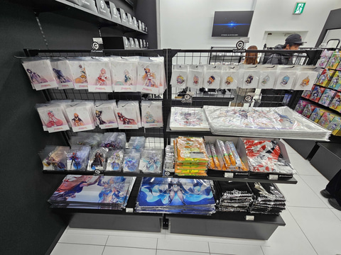 また、店内BGMには各タイトルのゲーム音楽が流れているほか、各所に設置されているモニターには様々なPVが映し出されている。今回、オープン前日となる2月26日に先行内覧会が行なわれ、店内が初公開となった。本稿では「CyConveni」の様子を撮り下ろしで紹介していく。