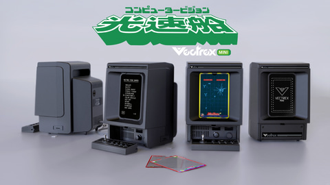 「光速船 Mini」は1980年代に登場したベクタースキャン機「光速船」を1/2サイズで再現したハード。光り輝く線(ベクタースキャン)」の描画を、最新の技術で忠実に再現し、日本語対応の実機を展開。さらに、日本向けに特別な筐体カラー「紺色」の導入も決定している。