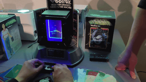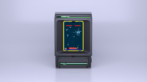 本体のサイズはオリジナルの半分。当時のコンソールと同様に、プラスチックシェルは「射出成形(インジェクション・モールディング)」で製造されている。ディスプレイには、5インチのAMOLED(有機EL)が採用されており、高いコントラスト比により、当時のブラウン管が放っていた鋭い光の軌跡を、鮮明かつ明るく映し出せる。