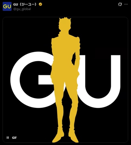 ジーユーは、公式Xにて「ジョジョの奇妙な冒険」のキャラクターと思われるシルエットのgif画像を投稿した。