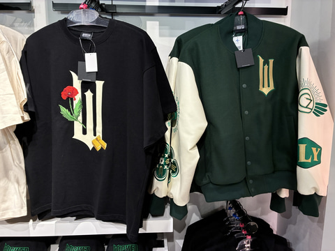 展開されるグッズは、物語の主人公グリンダとエルファバの2人をデザインしたもの。Tシャツやフーディといったアパレルだけでなく、ポーチやラバーダックといったグッズも用意されている。