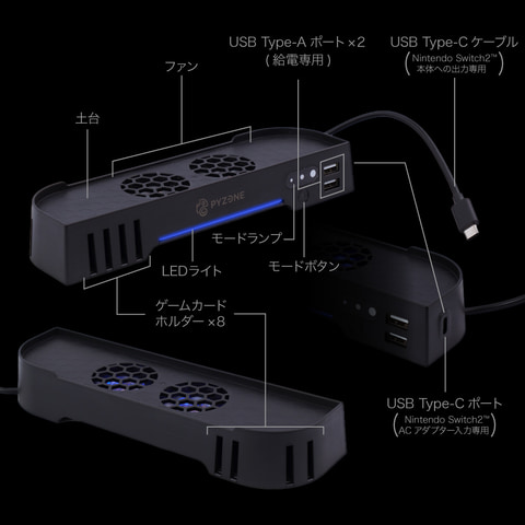・電源:Nintendo Switch2の専用USB-ACアダプターを使用する。