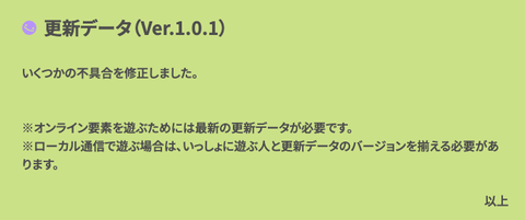 - 【ぽこ あ ポケモン:更新データ(Ver.1.0.1)】