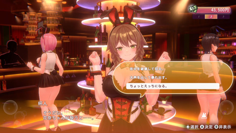 バニーガーデンは、週末のみの営業となっているため、平日は店に通うための軍資金を稼ぐ日々。友人の仕事を手伝って週払いで稼いだり、週末にバニーガーデンに行きたい気持ちをグッと抑えて派遣の仕事に入ったりと、働き方はプレーヤー次第。ハイリスク・ハイリターンのギャンブルで一気に稼ぐこともできるが、自己責任となる。