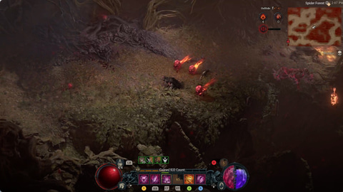 例えば、小さな爆発する悪魔になって突撃し、周囲に悪魔を撒き散らすものがあります。また、戦場に「ドクロ」を飛ばして操作するスキルがあるのですが、これに特定のユニークを組み合わせると、儀式によって戦場中に「影の跡」を残しながらドクロが駆け巡るようになります。戦場を自分の好きなように塗り替えることができる、とてもクールなアイテムです。