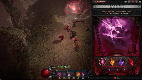 手順としては、まず主要なシャードによってそれぞれ大きく異なるプレイスタイル向けのパッシブを獲得し、特定の悪魔をペットとして捕縛。次に3つの欠片の中から1つを選択するのだが、これは特化するスタイルを選ぶためのサブオプションで、パッシブスキル、リソース、アビリティが決定される。
