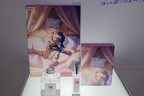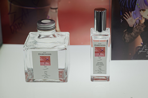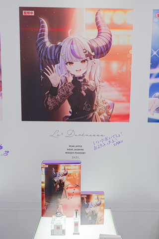 “全てのファンのために香りを作るフレグランスブランド”Anidealのブースでは、hololive×Anidealによる第3弾の香水を展示。猫又おかゆさん、ラプラス・ダークネスさん、轟はじめさんの監修中ビジュアルや、商品の実物を確認することができた。