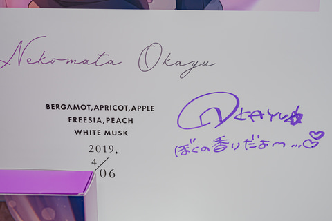 【ホロライブ】Anideal、猫又おかゆさん、ラプラス・ダークネスさん、轟はじめさんの香水や監修中ビジュアルを展示