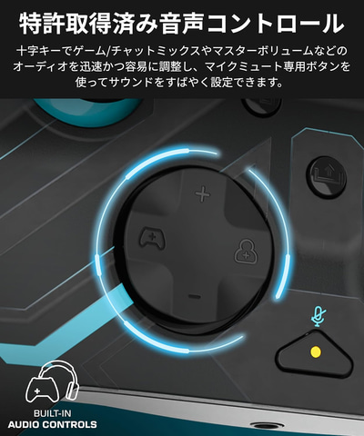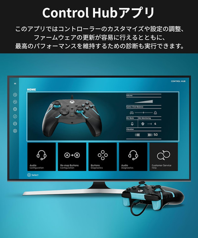 方向パッドに搭載されたオーディオコントロールでは、マスターボリュームやチャット/ゲームバランス、マイクミュートなどをプレイ中にすばやく調整できる。さらに、無料のControl Hubアプリを使えば、ボタンリマッピングやトリガー感度、デッドゾーンなど詳細なカスタマイズが行なえる。2.5mの取り外し可能なUSB-Cケーブルを採用。