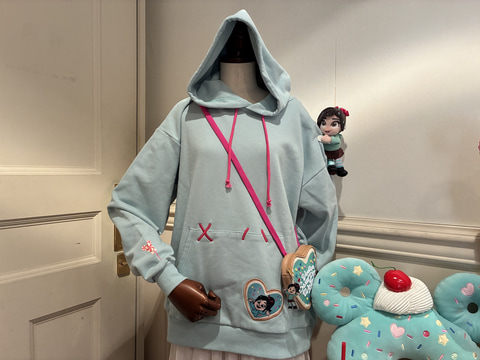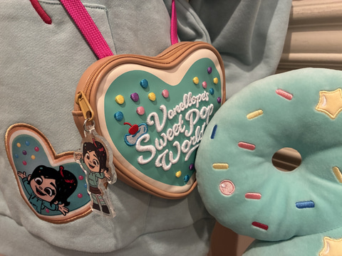 今回のスペシャルグッズには、映画「シュガー・ラッシュ」に登場するヴァネロペがモチーフのアイテムを多数ラインナップ。3月9日発売の先行グッズには、ドーナツクッションやヴァネロペの刺繍がかわいいパーカー、キービジュアルを用いたタンブラーなどが用意されている。