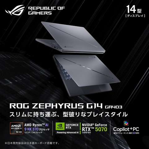 今回、ハイパフォーマンスと高速美麗ディスプレイを薄型軽量ボディに詰め込んだ、プレミアムゲーミングノートPC「ROG Zephyrus」シリーズからAMD Ryzen AI 9 HX 370とNVIDIA GeForce RTX 5070を搭載したAmazon限定モデルの14インチゲーミングノートPC「ROG Zephyrus G14」(型番:GA403WP-AI9R5070G)や、高い耐久性を備えた「TUF Gaming」からリフレッシュレート165Hzに対応する16インチゲーミングノートPC「TUF Gaming A16 FA608PM」(型番:FA608PM-R9R5060EC)などがラインナップ。それぞれ期間中、割引価格で提供される。
