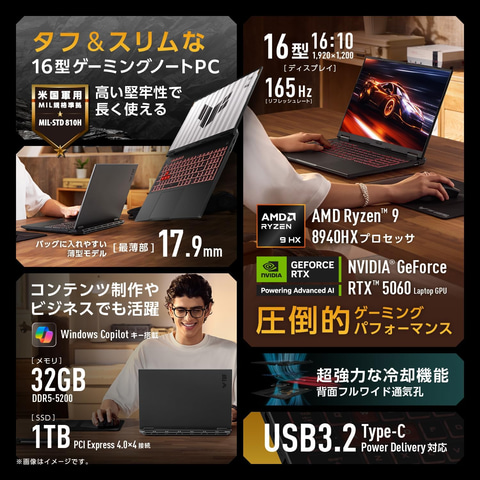 ASUS 16インチゲーミングノートPC「TUF Gaming A16 FA608PM」(FA608PM-R9R5060EC)