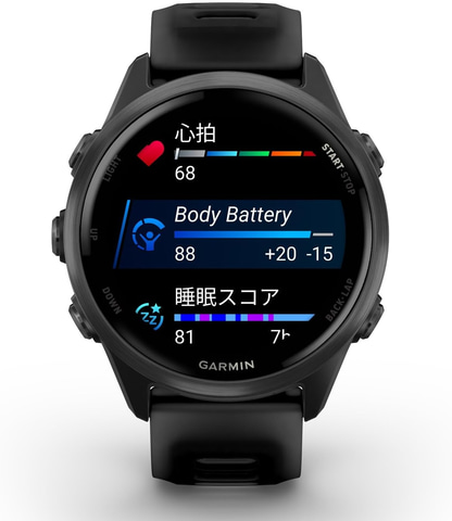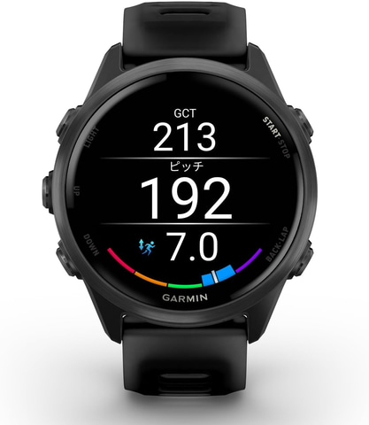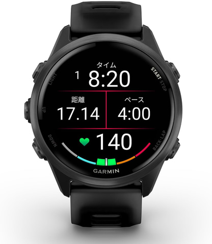 彩度と輝度を高め、太陽光の下でも綺麗に見えるAMOLEDディスプレイ/スピーカーとマイクを搭載し、ランニング中もハンズフリーでコントロールが可能。第五世代心拍計によって、心拍計測の精度が上がっている。ランニングやトライアスロンのために、パーソナライズされたGarmin Coachトレーニングプランも搭載。