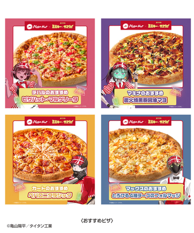 「ピザハット・マルゲリータ」、「炭火焼黒豚醤油マヨ」、「ペパロニクラシック」、「とろける4種チーズのフォルマッジ」の4種類 。