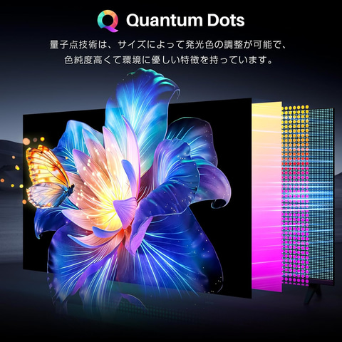 QLED(量子ドット)技術により、従来の液晶テレビでは表現できなかった、より広くより鮮やかな色域を実現。ハイエンドなHDRフォーマット「Dolby Vision」に対応しており、シーンごとにフレーム単位で映像を最適化し、深い影、輝くハイライト、精細な質感を表現する。