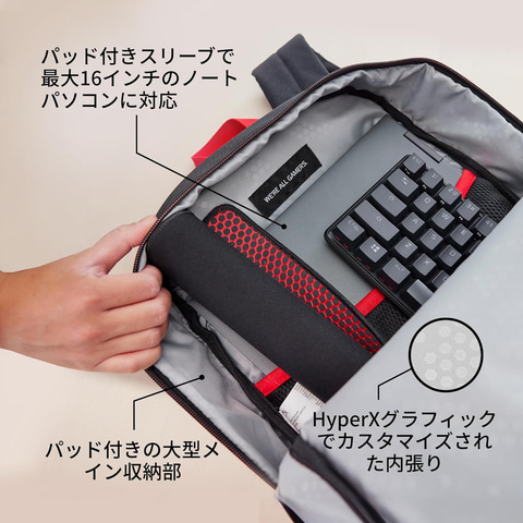 最大16インチのノートPCを収納可能なゲーミングバックパックも