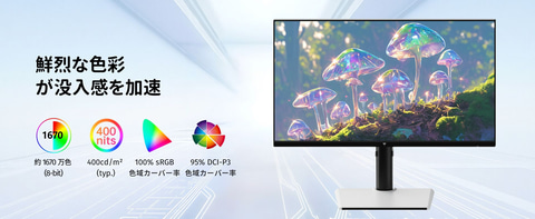色域:sRGB 100%、DCI-P3 95% (色域ボリューム123% sRGB)