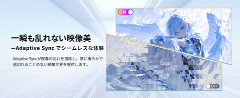 ハードウェアブルーライトカットとフリッカーフリー設計により、長時間のゲームプレイや作業でも目の疲れを大幅に軽減。集中力を途切れさせず、快適な環境でパフォーマンスを最大限に発揮できる。さらにAdaptive-Sync技術に対応し、画面のティアリングやスタッタリングを排除。すべてのシーンで非常にスムーズで没入感のある体験を提供する。