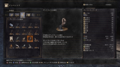 飄々とした口調の裏にある、不器用な優しさ。彼が盗みから無事に帰ってくるたびに、どれほどホッとしたことか。だが、物語が進むにつれ、彼が向かう盗みの舞台はより過酷で危険な場所になっていく。プレーヤーは「行かせる」か「行かせない」かを選択できるのだが、彼の意志を尊重して送り出し、そして……ロスリック城の屋根の上で、彼の遺体(と、彼が残した遺灰)を発見した時のあの喪失感。「グレイラットぉぉぉ! なんであんな危険な場所に行かせちゃったんだ私のバカ!」と、深夜に画面の前で頭を抱えたプレーヤーは、絶対に筆者だけではないはずだ。