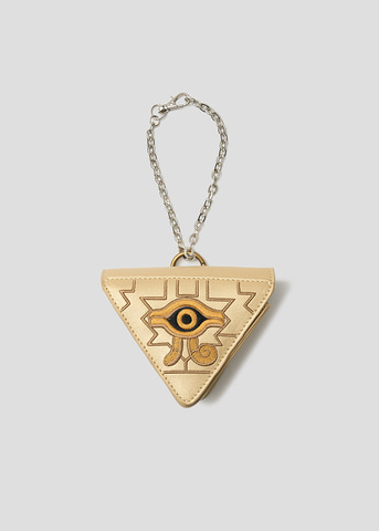 さらに、小物として「融合」と「青眼の究極竜(ブルーアイズ・アルティメットドラゴン)」がデザインされたショルダーバッグや、「千年パズル」のカスタムポーチもラインナップされている。