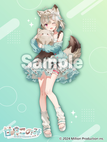 今回のコラボプライズのためだけに、「ナイトウェア」テーマのイラストを新たに描き下ろし。甘狼このみさんのイメージカラーを基調とし、衣装の所々に甘狼このみさんらしいアイテムやデザインが施されている。こちらを見つめてウインクする表情や、腕に抱かれて幸せそうな表情を浮かべるもふまるにも注目。